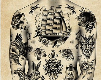 Traditional Tattoo Suit Ship, Whale, Traditional Tattoo Flash, Old School, Art Print 12x16 - Etsy