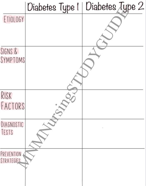 Diabetes Type 1 and Type 2 Comparison Chart - Etsy