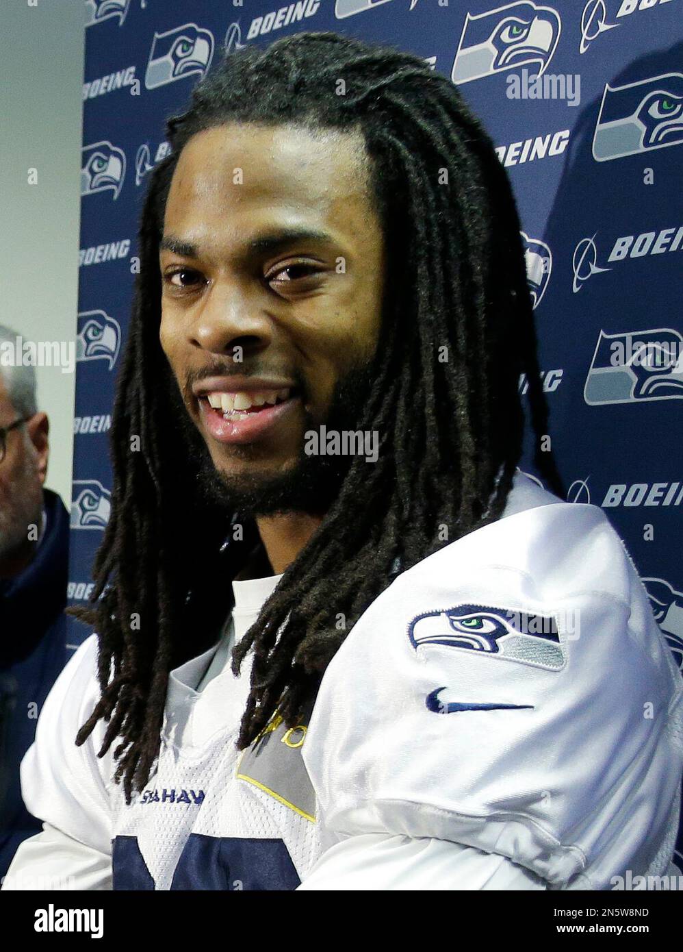 Seattle Seahawks NFL football cornerback Richard Sherman talks to reporters after practice, Thursday, Jan. 2, 2014 in Renton, Wash. (AP Photo/Ted S. Warren Stock Photo - Alamy