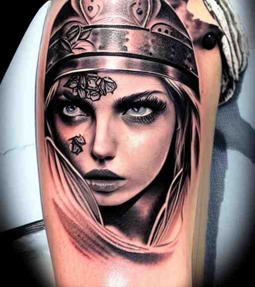 Tattoo design on white background of a beautiful girl warrior, r... - Arthub.ai
