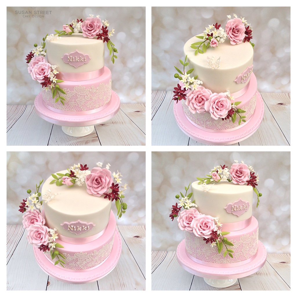 Susan Street on X: "Vintage style birthday cake with dusky pink roses and Ivory lace 🌸 #vintage #cake #pink #roses #lace #birthday https://t.co/Zcj263NPwD" / X