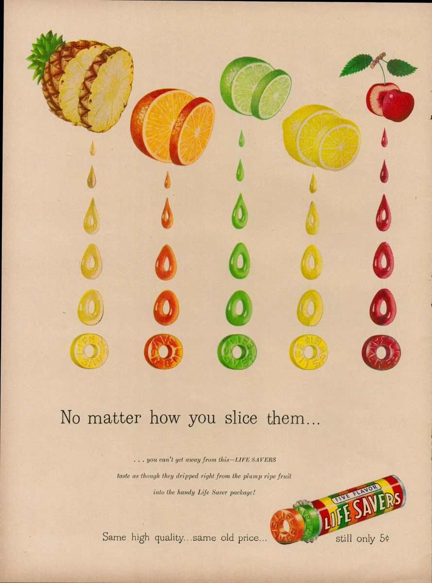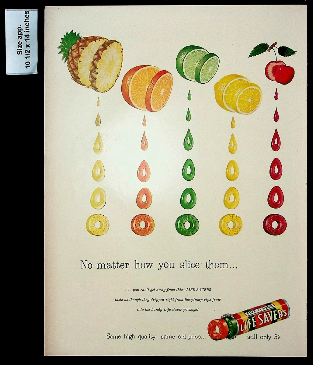 1948 Life Savers Five Flavor Fruit Dripping Slice Candy Vintage Print Ad 28733 | eBay