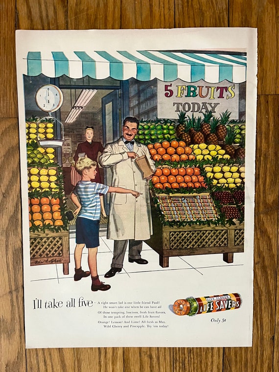 Life Savers Very Colorful Original Advertisement From 1947, Great Kitchen Decor, Retro Fruit Market, Vintage Candy Ad, Retro Candy Ad - Etsy