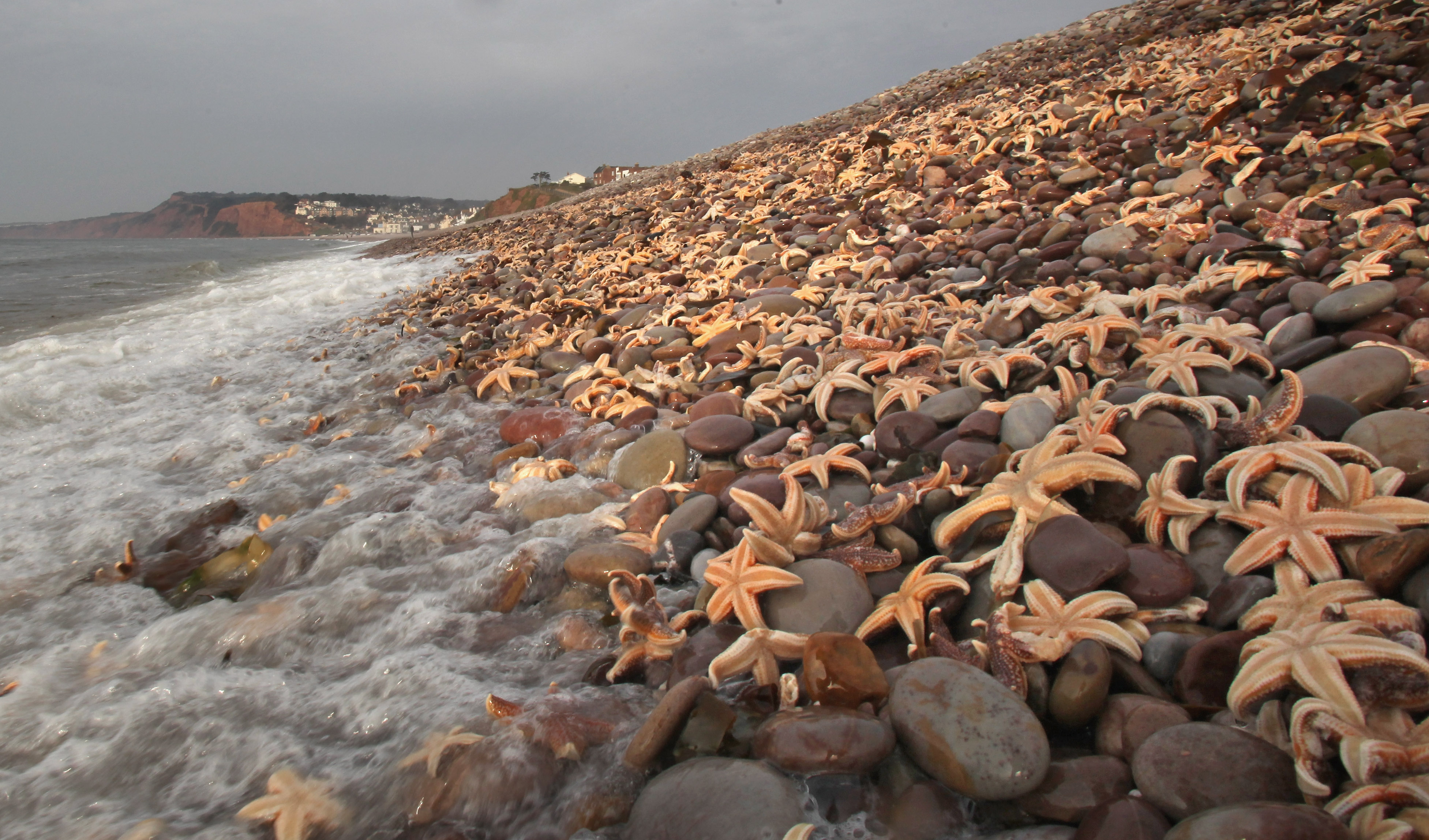 Thousands of dead starfish wash up on a British beach