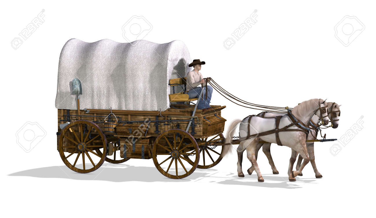 An Old West Covered Wagon - 3d Render. Stock Photo, Picture and Royalty Free Image. Image 55970211.