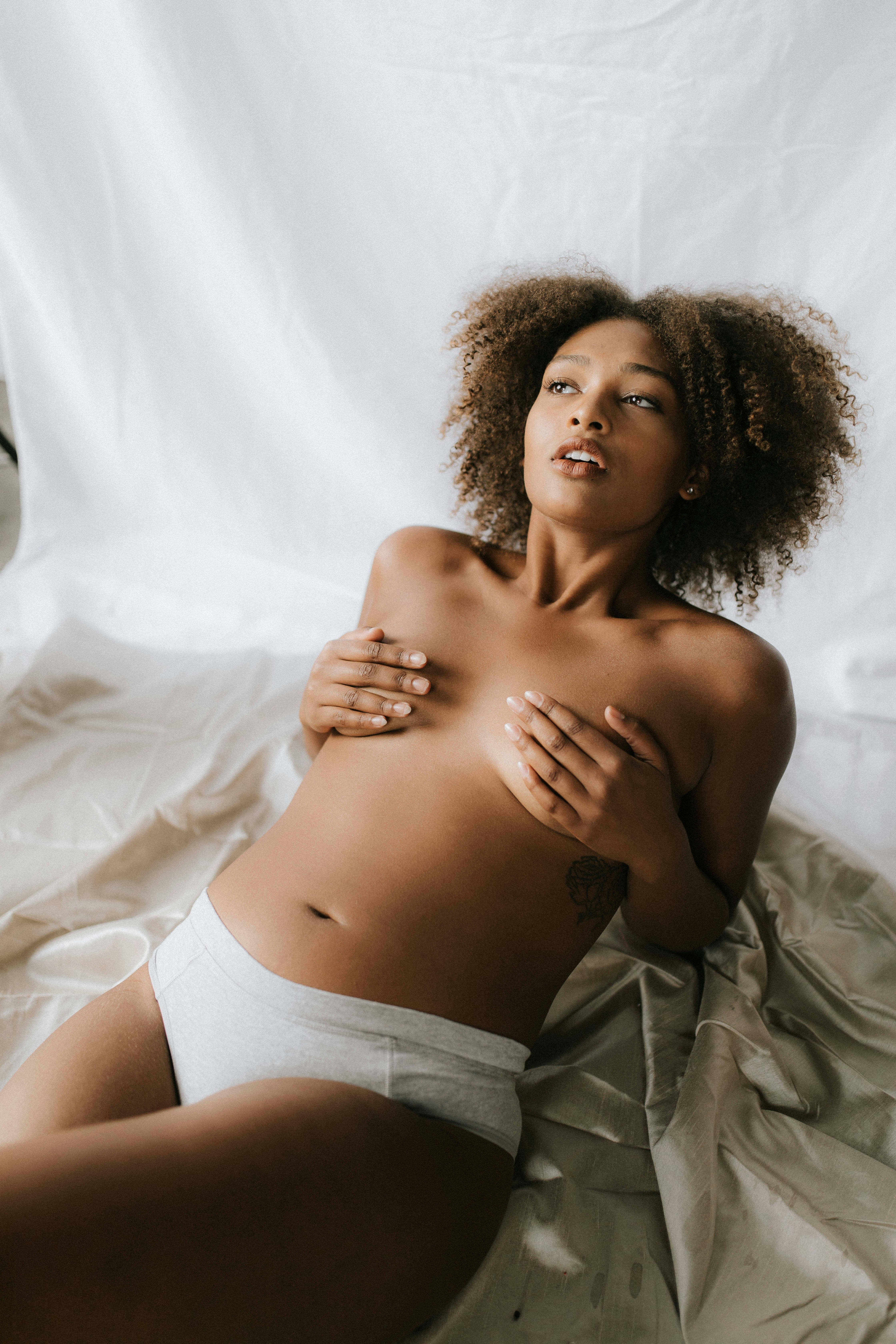 Woman lying back and covering her breasts photo – Free Grey Image on Unsplash