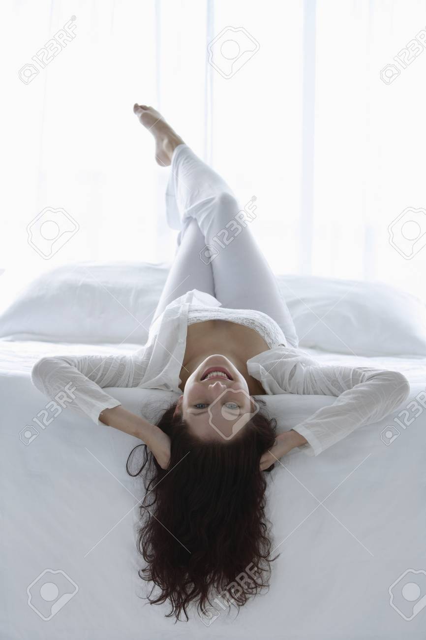 Lovely Woman Lying On Her Back In Her Bedroom Stock Photo, Picture and Royalty Free Image. Image 11207712.