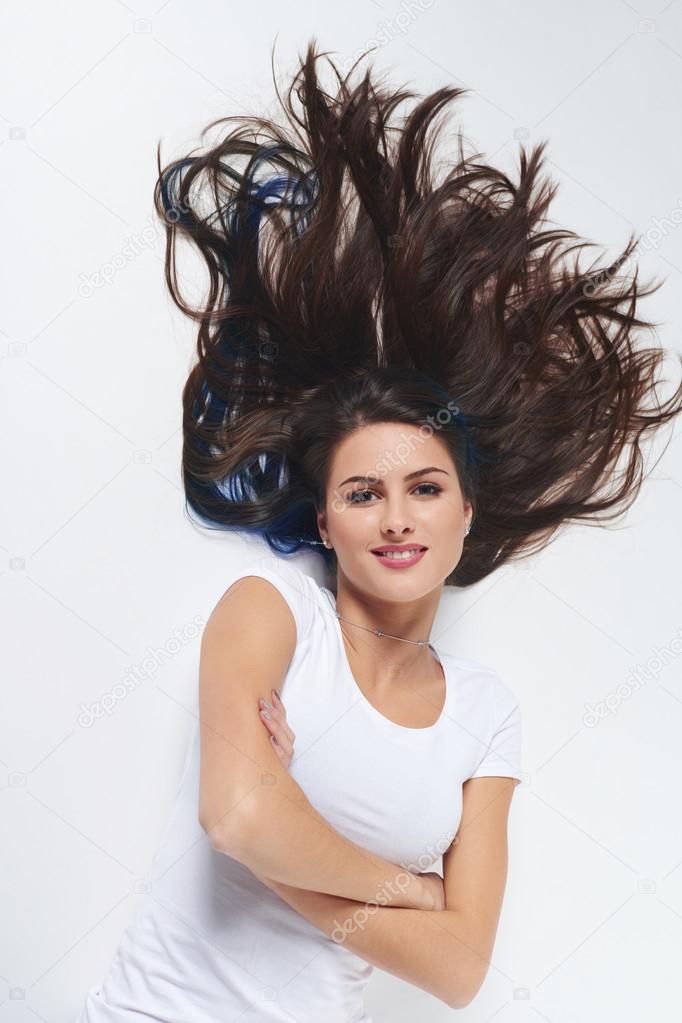 Woman Lying On Back, Hair Draped Down Stock Photo, Picture and Royalty Free Image. Image 69304559.