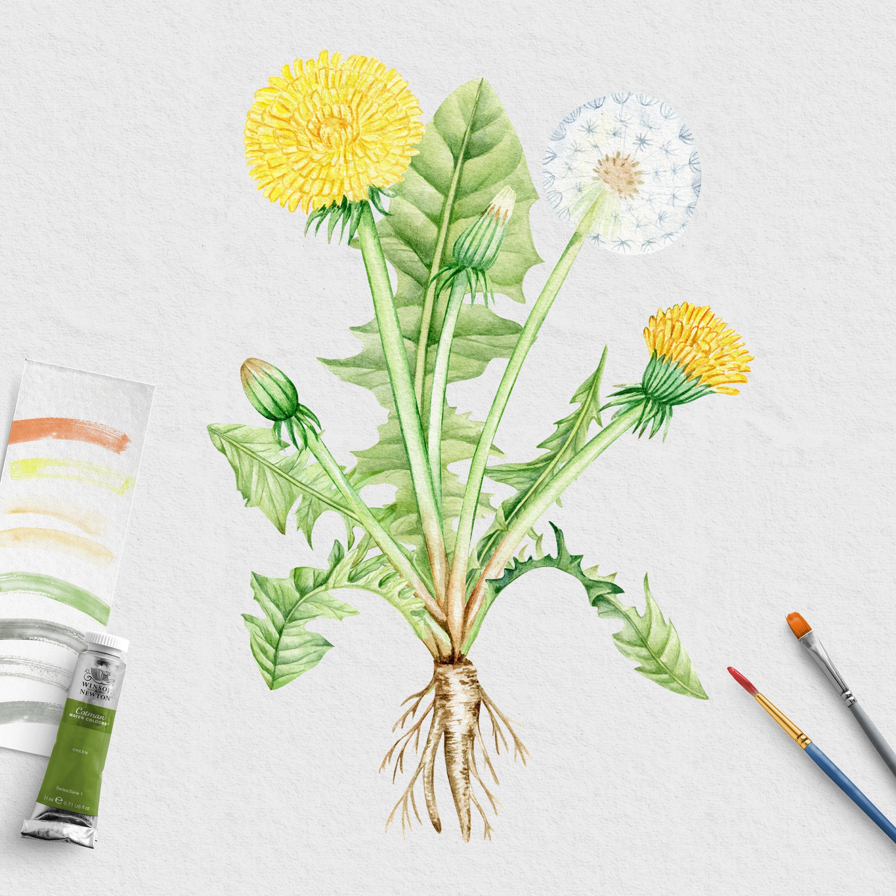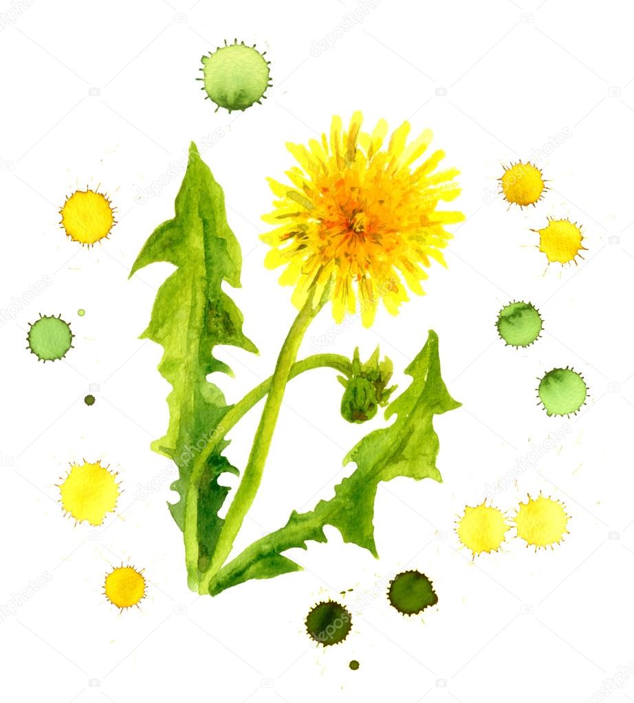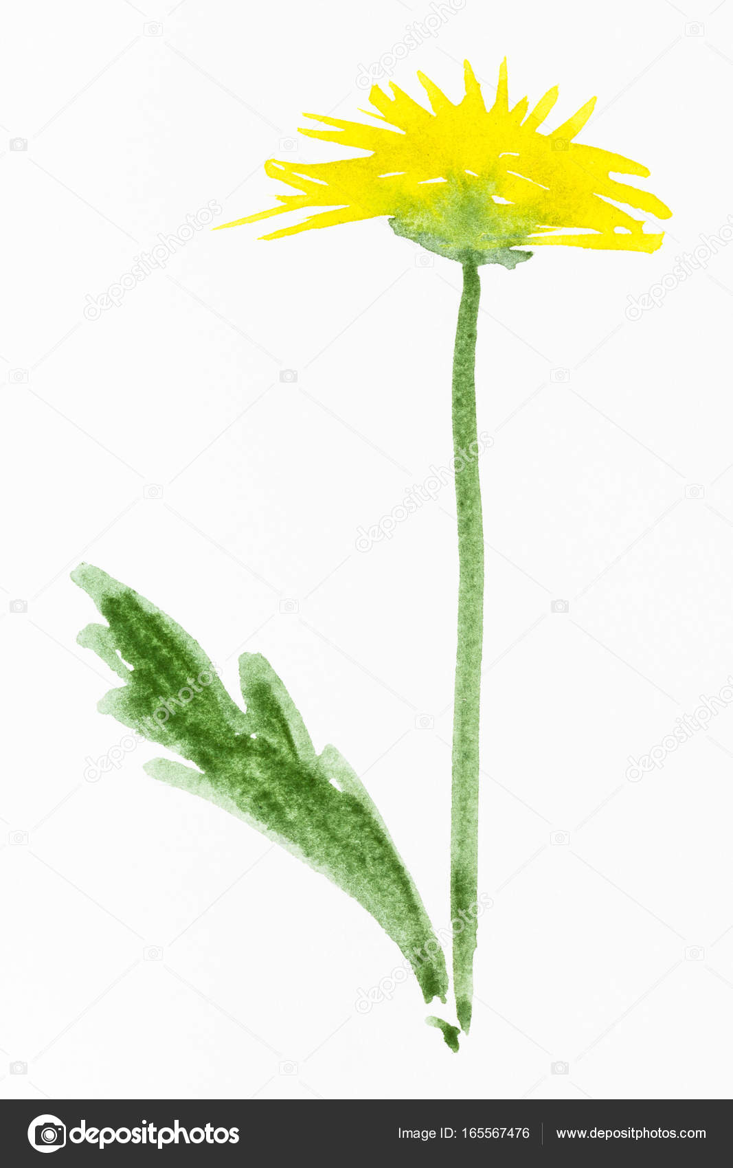 Premium Photo | Watercolour flowers dandelion hand draw illustration watercolor sketch yellow flowers green colour