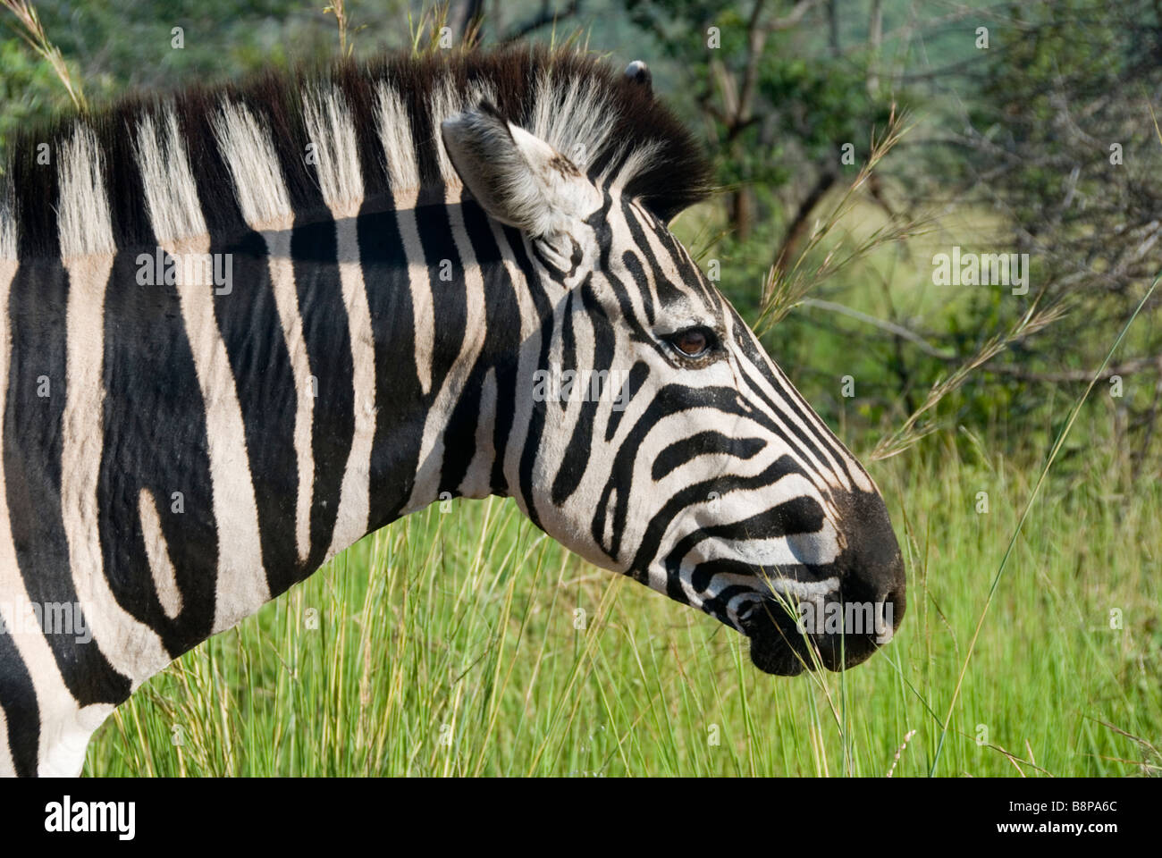 Side view headshot of zebra, Pilanesberg National Park, South Africa stock photo - OFFSET