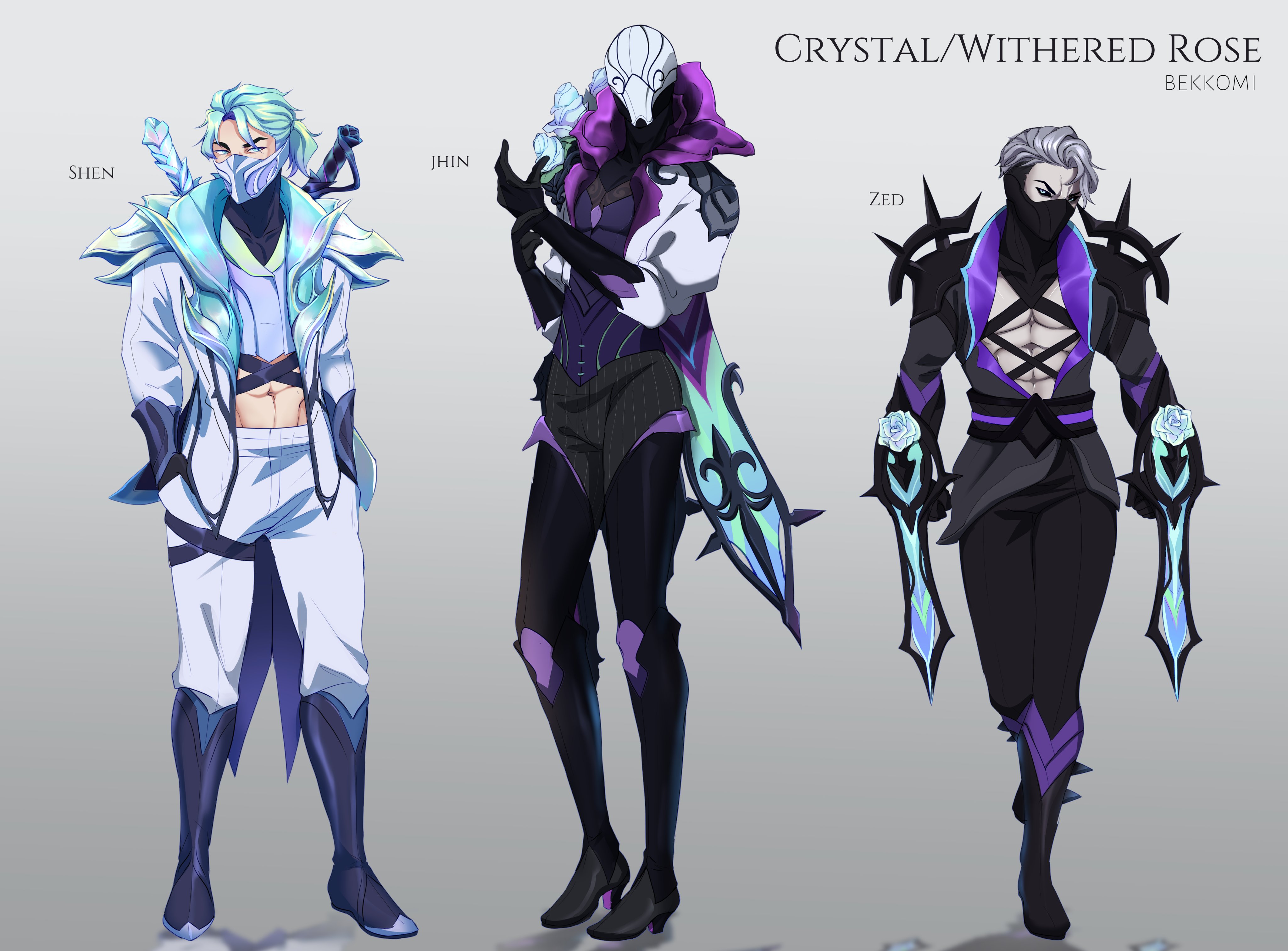 Bekkomi 🌻✨Shop code: NEXTYEARSME15 on X: "I would love it if Jhin, Shen, and Zed were to share the same skinline and the Crystal/Withered Rose AU is up my alley🥺🌹 #leagueoflegends #ArtofLegends